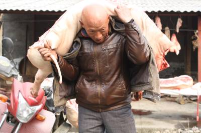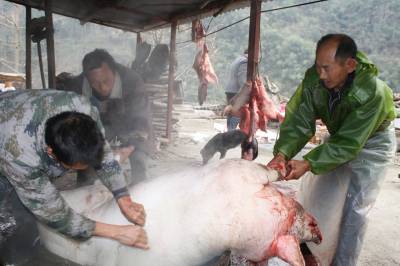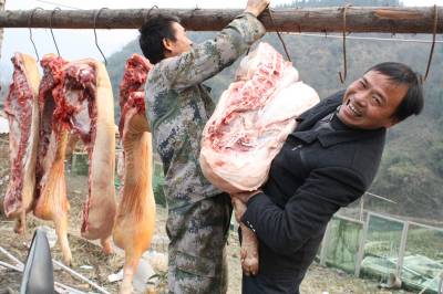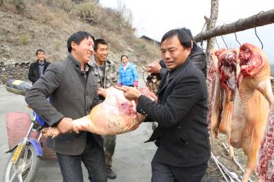 图一:合作社员杀猪开年会