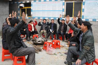 图二:合作社员举手表决2015年年度工作计划