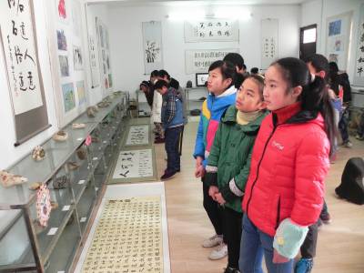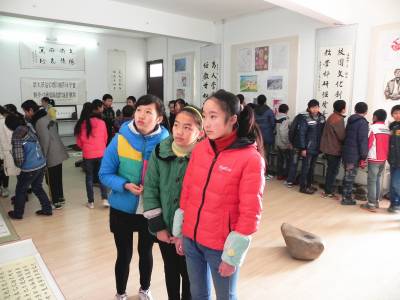 “迎新年 庆元旦”学生艺术作品展 12月29日,十堰市郧阳区青曲镇初级中学学生在展示自己参展作品。当日,该校举办了“迎新年 庆元旦”学生艺术作品展览,共展出具有代表性的书法、绘画、创作等100余幅(件)作品供师生欣赏。 (视界网 张传郧 摄 湖北省十堰市郧阳区青曲镇初级中学 13635714262 442531)
