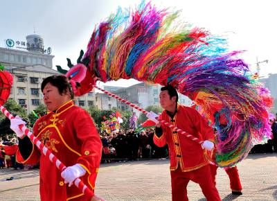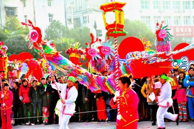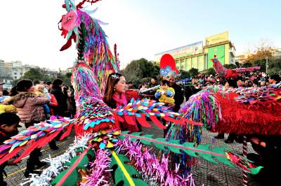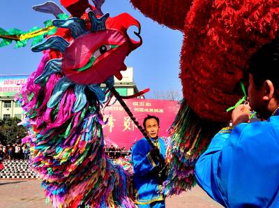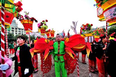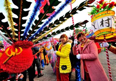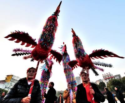 30日,十堰市郧阳区文化部门组织的27支乡村花灯队在郧阳文化广场展演凤凰灯、蚂虾灯,唱大戏。为近万百姓送上精美的“文化大餐”,受到群众广泛赞誉。(视界网 吴成林 摄)