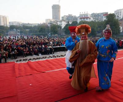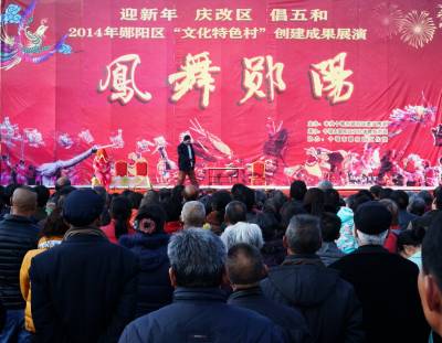 12月30日下午,为迎接2015年元旦的到来,郧阳区在郧阳文化广场举办迎新年,庆改区,倡五和,2014年文化特色村创建成果"凤舞郧阳"戏曲汇演,共有7个村的文艺队进行戏曲展演。 视界网周家山 摄