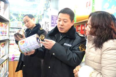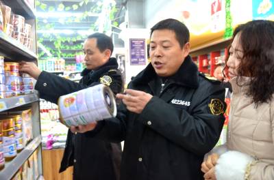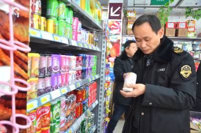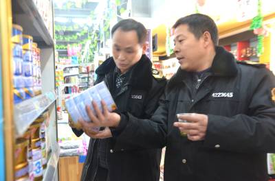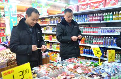 12.月31日,巴东县官渡口镇食药所工作人员正在超市检查食品。 连日来,该镇食药所工作人员在集镇、学校周边的超市、餐馆、食品经销店、菜市场等进行地毯式检查,现场整改8家不规范食品经销店,收缴处理过期劣质食品200多公斤,确保居民舌尖安全。巴东县官渡口镇政府 向传辉摄 电话 18963928551
