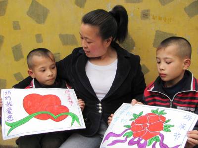”双胞”送祝福妈妈乐开花2010年5月8日,湖北郧县刘洞中学教师的双胞兄弟向妈妈送上一幅画,献上母亲节的祝福。母亲节来临之际,该校的双胞兄弟毛子木、毛子才,在学校老师的指导下参与母亲节感恩教育系列活动,通过开展帮妈妈做一件家务、给妈妈绘一幅画、送妈妈一句祝福的话等,作为节日礼物送给妈妈,感谢养育之恩。