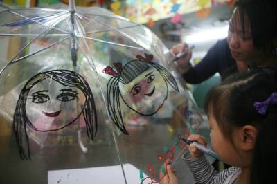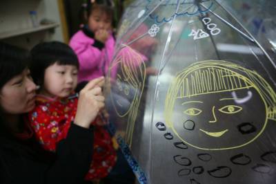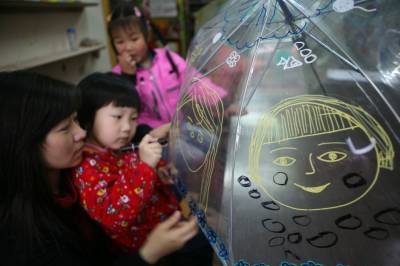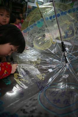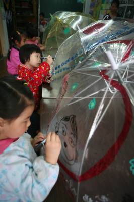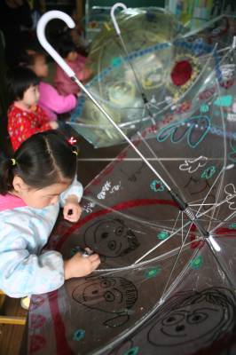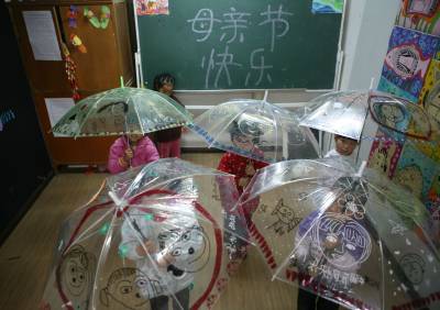 5月8日,湖北省襄樊市阳光未来学校开展”伞上画妈妈、祝福母亲节”为主题的绘画活动,在老师的指导下实行亲子互动,小孩在伞上描绘”我心中的妈妈”好形象,然后作为”母亲节”礼物送给妈妈,让孩子们从中体会和感受到妈妈就像伞一样一直呵护着自己。