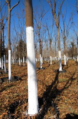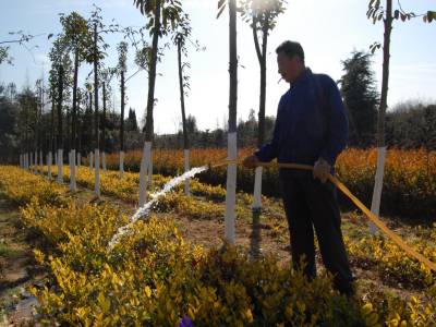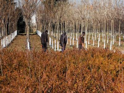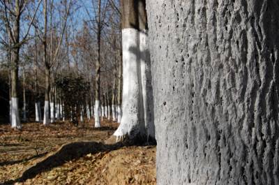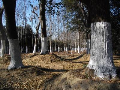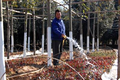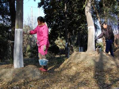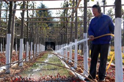 2015年1月1日,云梦县园林工人在湖北富苑科技生态园管理苗木。新年元旦第一天,云梦县组织园林工人在生态园等地为苗圃园花木苗浇水灌溉,为绿化苗木树干刷白,让树木穿上整齐的“白大褂”外套御寒过冬,确保树木防冻和防治病虫害,为“绿满荆楚”、“绿满梦泽”提供充足的苗木种源打基础。 本报视界网 陈保忠 何贵平 摄