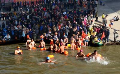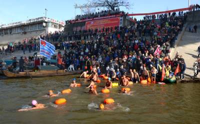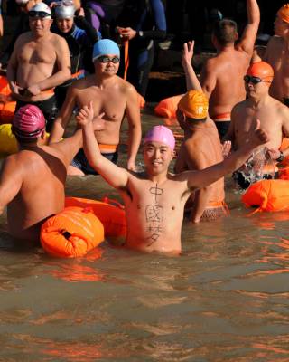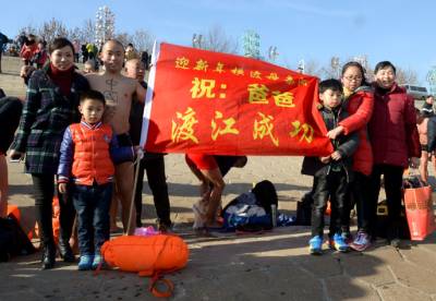 > 武汉冬泳队员今天顺利横渡长江