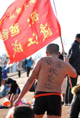1.1.下午,武汉天空蓝天白云,武昌汉阳门江边水温10.7度。据参加组织今天活动的黄鹤楼冬泳队副队长赵文淸讲:今天是近几年组织冬天横渡长江天气最好的一年,参加渡江的100多名冬泳队员,一般经过26分钟的博击就顺利的到达了汉阳南岸嘴.