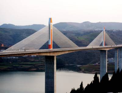 1月1日,郧阳汉江公路特大桥完成涂装。“郧十”高速公路汉江特大桥全长1031米,宽24.5米,双向4车道,主跨238米,为斜拉钢构组合体系桥梁,主塔塔墩高82.6米,桥面之上塔身高39.9米,水下深28米,大桥设计时速每小时80公里,总投资3.7亿元,大桥于2011年3月6日开工建设。 视界网周家山 摄
