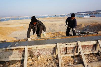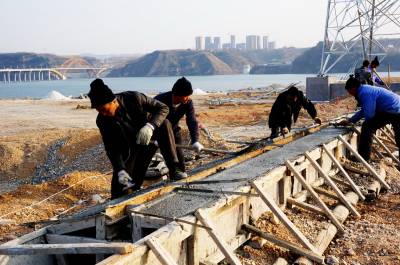1月1日,技术工人正在十堰市郧阳区汉江北岸建设汉江护坡堤岸挡水墙。郧阳区是南水北调中线工程核心水源区,城区汉江北岸全长6.29公里范围内汉江堤岸防护工程完成建设后,防浪挡水墙基座建设也进入收尾施工。郧阳区汉江堤岸将成为丹江口库区及陕、豫、鄂汉江沿岸最大的汉江护岸工程。 视界网周家山 摄
