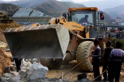 元月1日:346国道竹溪段改扩建一级路建设施工人员放弃元旦小长假休息而坚守工地加速推进建设施工进度(视界网温大树摄)