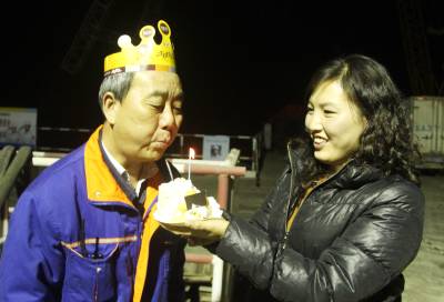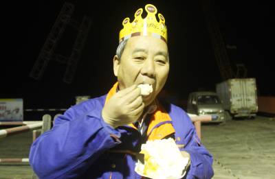 新年伊始,项目部组织一月份过生日的职工聚在一起庆祝自己的生日。然而王红年却碰上当夜班,他又不想要别人替他当班,依然坚守在自己的工作岗位上。项目部工会负责人特意把一份生日蛋糕送到施工现场,递到王红年的手上,给他戴上生日帽。此时此刻,王红年同志感激万分,一连不知说出了多少个谢谢……。