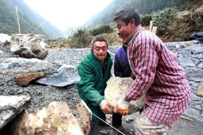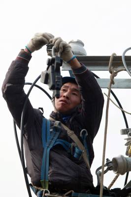 2015年元旦,大多数人都沉浸在节假日的气氛里,我们的劳动者正在用汗水谱写着歌声。 这天,我徒步到湖北鹤峰县北佳乡大路坪村三组的龚家塆,被这里正在进行农田整治的农民吸引住,我随即拿出相机将他们的面容记录下来。走不多远,又见到一批正在进行二次农网改造的工人,冒着严寒在空中作业。