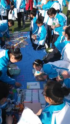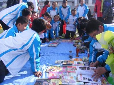 学生以班级为单位设立了13个摊位,老师以工会为单位设立了1个摊位。同学各自把自己心爱的小说、漫画书、故事书、学习用具、以及卡通玩偶等拿出来进行售卖。老师们也把自己的旧书、磁带和玩偶拿来兜售。跳蚤市场现场,此起彼伏的叫卖声和吆喝声不绝于耳,引起全校师生前来驻足观看选购。