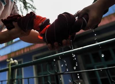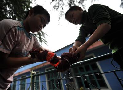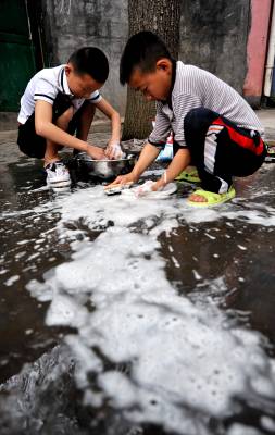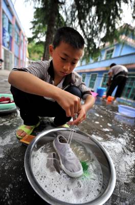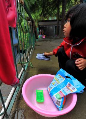 9日,宣恩县馨澳文武学校的孩子们正在利用星期天洗衣裤鞋袜。这些孩子大多来自农村,其中许多孩子的父母在外务工。她们当中大的十一二岁,小的才七八岁,但是她们都已在老师的辅导下学会了生活自理,学会了相互协作,也学会了独立处理生活中遇到的困难和问题。而这一切,正是如今教育体系中所缺少的重要内容。(视界网签约摄影师:宋文摄)