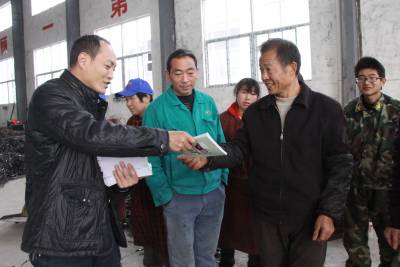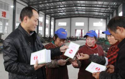 年前忙送法 (图文) 竹山县宝丰镇中心学校 朱本双 电话:13177481456 邮编:442213 电子信箱:zsbfzbs@126.com 身份证号码:422624196910182052 1月5日,竹山县司法局宝丰司法所所长师光辉(左)深入宝丰创业园宏志五金公司加工车间为员工送去法律读本。年前,该县司法部门扎实开展好法律进机关、进乡村、进社区、进学校、进企业、进单位等“法律六进”活动,让法律知识和法制观念走进了千家万户,最大限度地调动广大群众学法用法守法的积极性。