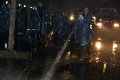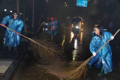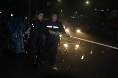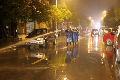 1月5日晚,宣恩县城市管理局全体城管职工及环卫工人冒雨冲洗清扫县城大街小巷路面淤泥。 受连日雨天影响,城区部分主次街道路面沾上淤泥,给环卫工人清扫保洁带来难度。当晚,全局近300余名城管职工及环卫工人从晚7时开始至6日凌晨两点三十分,将城区兴隆大道、建设路、民族路五路等城区4条主干道及13条次干道的51万多平方米的路面淤泥全部冲洗干净。霓虹灯下的城管人为市民创造了宜居幸福生活环境。 (本报视界网:罗清峰、余艳芹摄)