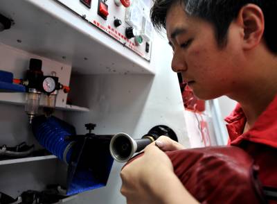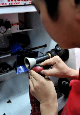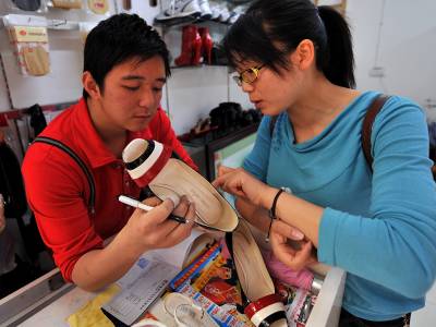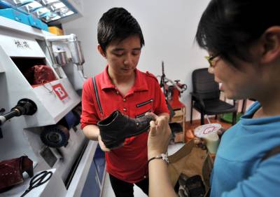 9日,返乡青年杨利在精心打理在县城开办融皮鞋、皮包”改装”、美容等于一体的小店。杨利是该县晓关侗族乡野椒园村农民,十几岁就到浙江一皮鞋厂打工。学了技术的他今年回到家乡开起了这家店,主要从事把长鞋变短、宽鞋变窄、旧鞋旧包翻新、为鞋除臭除菌等。”开张的时间不长,但生意很好,因为花少量的钱就能整出一双合脚的鞋、得到一个满意的包,好多市民甚至把放了好些年的东西都翻出来改。”杨利说。(视界网签约摄影师:宋文摄)