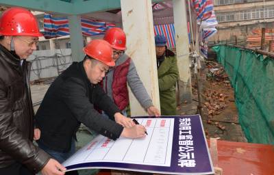 6日上午,孝感市劳动监察保障支队执法人员在孝感城区城站路一建筑工地填写劳动用工监督公示牌。为加大清欠农民工工资力度,维护农民工合法权益,市人社局、市公安局、市建委等八部门组成联合执法组,对用人单位农民工工资支付情况进行专项检查。同时,联合执法组在50多个建筑工地挂起农民工维权公示牌。公示牌写明维权内容以及维权电话,方便民工维权。李文勇摄 孝感