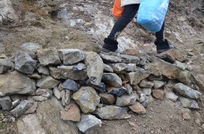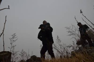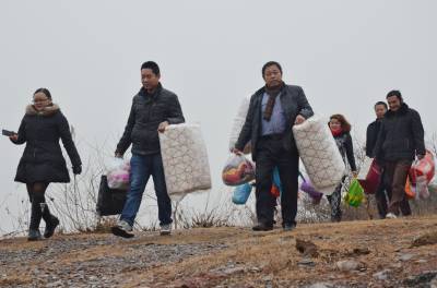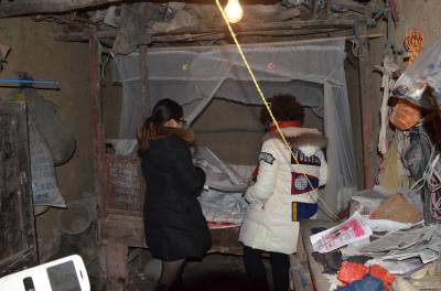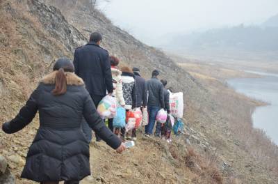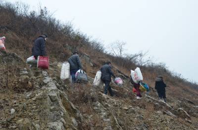 湖北爱心社安陆分社募集30余件棉被、棉衣等物资帮王义贞镇黄金村特困户张金平父子过冬。图为,1月6日下午,9名爱心人士翻山越岭,赶往张家。