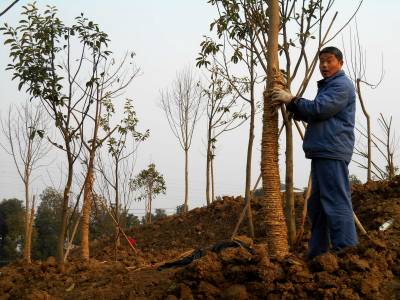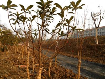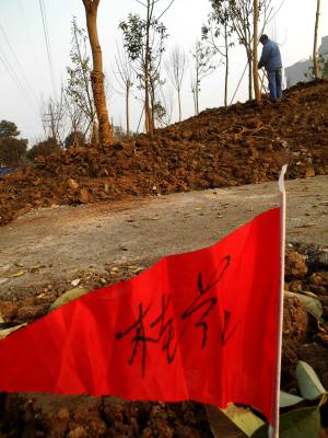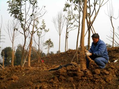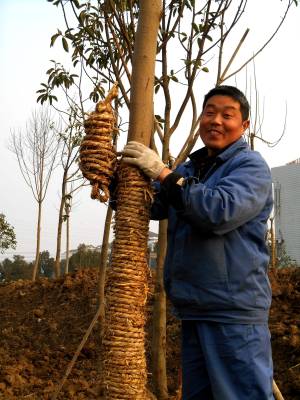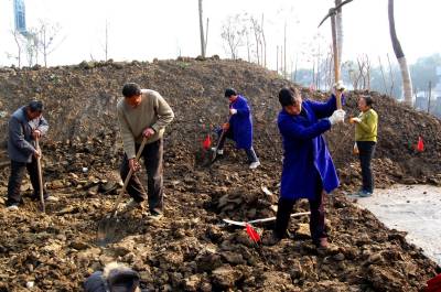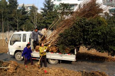 2015年1月7、8日,绿化施工人员在云梦北城垣城中游园栽植景观绿化树,为新栽植的树用草绳捆绑“穿衣”保温过冬。截止1月8日,云梦县林业部门为“绿满梦泽”已备苗木26万株,其中柑橘2万株,核桃4万株,杨树20万株;胡金店、清明河、倒店乡梦耕年华等地耕整植树造林面积3600多亩;曾店、倒店、城关等地新栽植桂花、茶梅、杜鹃、枇杷、银杏、樟树等300多亩12000多株。