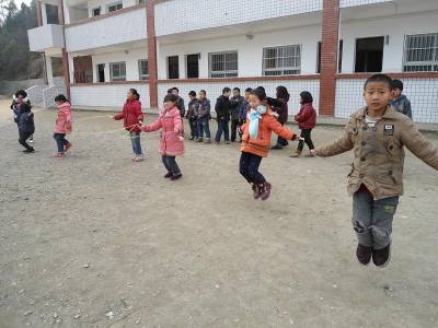 8日,十堰市郧阳区五峰乡界牌完全小学的学生在操场上跳绳。连日来,该区中小学开展了阳光体育大课间活动,组织学生跑步、跳绳、拔河等活动,确保学生每天一小时校园体育活动,既增添运动的快乐,又感受冬日的温暖。 (视界网 周学山)