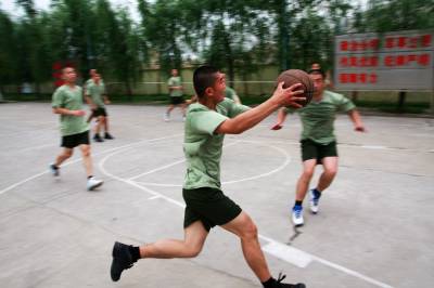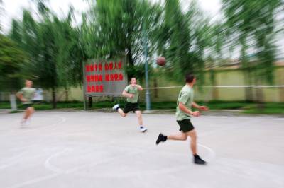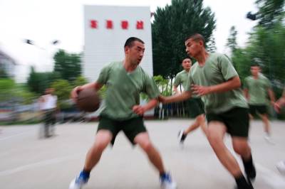 武汉武警一支队,是湖北武警有名的尖刀队。该支队有个传统——凡事要么不做,要做就必争第一。军事训练顶呱呱是没得说,文体活动也不甘落后,”威风锣鼓队”、”军乐队”,还有咱们今天看到的”篮球队”,在湖北武警名气响当当,篮球班多次夺得”荆楚卫士杯”篮球比赛的桂冠。图为他们正在加紧训练,目标只有一个——卫冕总冠军!