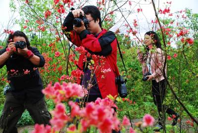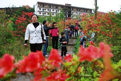 又是一年杜鹃红5月8日,几名游客在中国传统习俗名镇谋道镇苏马荡景区争相拍摄杜鹃(图一)。当日,这里举办了第三届杜鹃文化旅游节,组织的民间文艺演出吸引了近千名游客观看(图二)。慕名赶来赏花的游客络绎不绝(图三),开在岩崖上的杜鹃花成为游人注目的焦点(图四)。苏马荡景区由两个古老的土家山寨组成,被誉为”森林中的伊甸园”和”中国最美的小地方”。该景区开发三年来,秉承”发展乡村旅游,实现富民富村”的宗旨,取得了AA国家级旅游景区和恩施州三星级农家乐,走出了一条景区带动村民致富的路子。目前,该景区的2个村正在全力打造湖北最美丽的乡村。(秦卫飞)