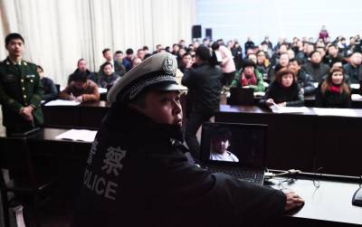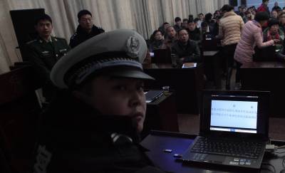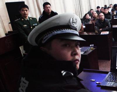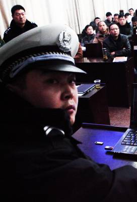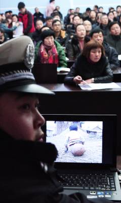 秭归县公安局在冬季安全防控中,针对三大安全(交通、消防、治安)出动“民警流动宣传队”,进学校、进车站、进社区、进村落、进工厂、进机关,上门播放兼具三大安全警示和防控指导功用的“微电影”,发动群众尽应尽之责,打响全县冬季安全防控阵地守卫战。图为元月9日,在秭归县茅坪镇政府会议室,秭归县公安局“流动宣传队”上门为全镇各单位分管安全工作的负责人和工作人员放映三大安全(交通、消防、治安)的“微电影”。