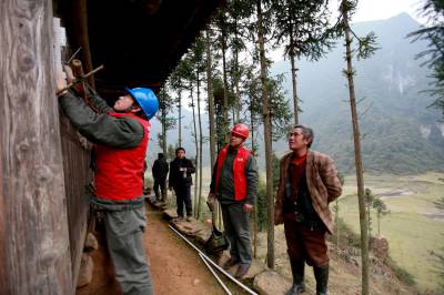 元月9日上午,在宣恩椒园镇洗草坝村特困户谢应强家,热闹无比,喜乐翻天,来自国网宣恩县供电公司的电力“红马甲”正在为其整改线路、更换表计、闸刀、开关等。