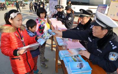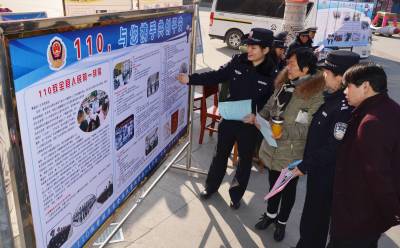 遇有危险如何向110求助?在全国第29个110宣传日到来之际,湖北省保康县公安局组织民警上街道下社区,以各种形式向群众宣传110。图为1月10日,保康民警在该县紫薇广场开展110宣传活动。(视界网 欧阳智慧 摄)