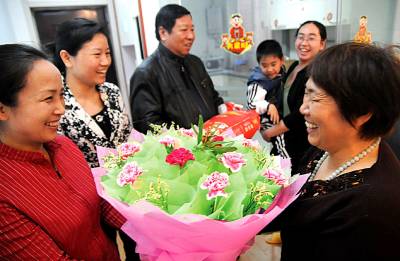 母亲节的祝福5月9日,中国十五冶金建设有限公司四公司吊装工程处的工会干部带着鲜花和慰问品,给工作在缅甸项目部的员工肖永军的母亲杨森风(右一)、妻子王玲(右二)送去母亲节的祝福。据了解,中国十五冶金建设有限公司近几年发展迅速,分别在赞比亚、阿尔及利亚、缅甸、安哥拉等十几个国家承接了施工任务,每年要向国外派出几百名职工。为确保职工能安心在国外工作,增强员工的凝聚力,该公司全面实施亲情化管理,以关心员工生活、解决困难为重点,走访慰问员工家庭,开展春节送温暖、金秋助学、重大节假日慰问、家书联心等系列人性化的管理举措,充分激发职工工作的积极性,主动性和创造性,公司处处洋溢出和谐的氛围。黄石市黄石日报摄影部邱孝威摄电话:13807232603邮编:435002