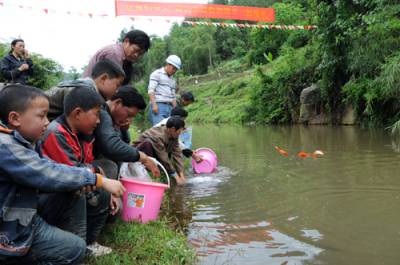 5月9日,恩施市白杨乡朝阳坡生态环境志愿保护小组将3600尾鱼苗投放到朝阳坡村的”母亲河”里。据悉,该志愿保护小组以”人人参与,向大自然倾献爱心”为口号首次发动该村200多户村民集资5000余元,用于修筑塘堰、购买鱼苗等,旨在保护母亲河生态,增强群众的环保意识。 该志愿保护小组计划今年向河流分批投放鱼苗2万尾,两年内禁止一切捕鱼行为。(通讯员:吴书梅张莉)