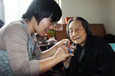 2010年5月9日,武汉,30余名学生义工带着礼物来到武昌星达敬老院和老人们一起过母亲节,打扫房间、剪指甲、量血压,陪老人拉家常,让老人们感受到家的温暖、子女的孝心。
