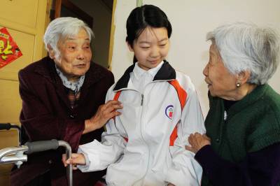 > 武汉:学生义工敬老院里过母亲节