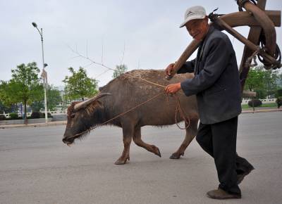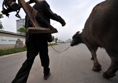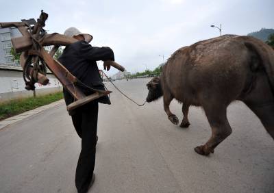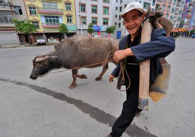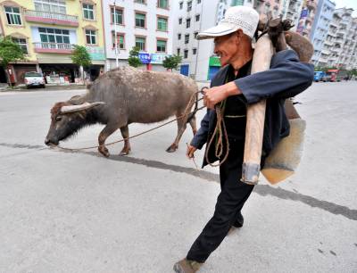 10日,路过宣恩县珠山镇兴隆大道上的老农和老水牛。人和牛都不属于那条街道,但他们的到来,却成为一道春夏之交时的风景。但他们之间的”差异”,却是那样美丽、和谐。应该说:他们不仅是农田的耕耘者,同时他们还在”耕耘”着城市。(视界网签约摄影师:宋文摄)