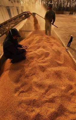 1月13日,孝感“放心粮油”加工基地、湖北春晖集团朱湖分公司,员工从仓储车间装运准备送往精加工车间的稻谷。该公司二条生产线日产300吨放心粮,满足孝感108家“湖北放心粮油”连锁店的粮油供给。作为市政府2014年十件实事之一,去年,孝感大力实施“放心粮油”工程,在全市布局了108个“湖北放心粮油”连锁店,确保市民餐桌安全。 签约摄影师晏美华摄