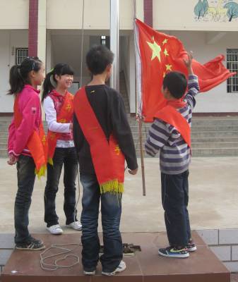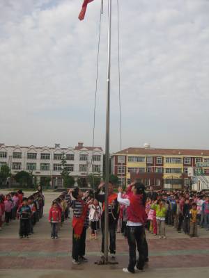 > 我们,迎着朝阳升国旗