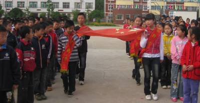 我们,迎着朝阳升国旗5月10日,星期一,安陆市王义贞镇中心小学600多名学生正迎着朝阳升起国旗。多年来,该校把升国旗作为一项重要的爱国主义教育活动。每周一上课前,同学们便伫立在操场上的旗台下,随着音乐的缓缓升起,4名护旗手便开始出旗、升旗,随后,同学们便一起唱国歌、行举目礼,最后是国旗下的讲话——整个过程中庄重严肃。同学们从中萌生了对祖国的热爱和对国旗、国歌的敬重。视界网签约摄影师:王代金