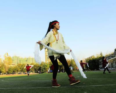 校园内风景如画,楼台亭角随处可见,虽说是初冬季节看不到杨柳依依,但也有梧桐银杏相伴,怎一个美字了得;湖畔长廊,成群结队的学生走向教室;公园校舍,诵诵读书声不绝于耳;绿荫场上,校园球赛酣战未已,广场一侧,锅庄舞精彩纷呈,舒展优美的舞姿,吸引众多的校园师生围观,是学校一道亮丽的风景。.