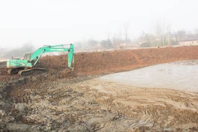 塘堰长期淤积,大大削弱了其抗旱防涝效益;为此,安陆市今冬投入300余台(套)机械,逾千万元资金,对各村组当家堰展开清淤行动,以提高其蓄水灌溉能力。图为1月14日,大型机械在王义贞镇汝南村二组给塘堰清淤。(本报视界网 王代金 摄影)