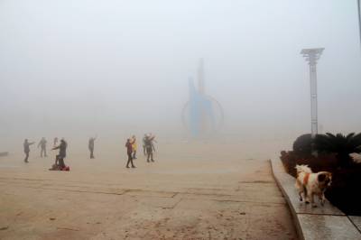 1月15日,一场大雾笼罩安陆大地,浓雾时能见度只有几十米,这是一组摄于安陆涢城河滨的图片。