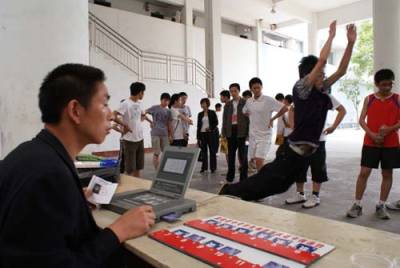 阳光中考进行时荆楚网5月10电(通讯员郑凌云)5月10日,建始县实验中学学生在认真进行理科实验操作考试(图一)。该县初中毕业生体育考试和理科实验操作考试同时开始举行。初中毕业生体育考试和理科实验操作考试是中考的重要内容。该县教育局高度重视,召开专题会议安排部署,从全县抽调30名政治素质高、业务能力强的考试工作人员,并认真开展监考工作业务培训。该县成立领导巡视、纪检、后勤保障三组确保考试工作的顺利进行。考试工作组分两大组在全县同时展开考试工作,严格实行组长负责制,严格执行标准,并通过媒体宣传报道、派驻监督员、聘请社会人士等方式加强监督,确保考试的公开、透明、公正。在考试现场,笔者看到考试工作人员认真核对考生、严格按要求对学生进行成绩检测(图二),所有考生认真按要求参加各项测试(图三)。采访手记:一年一度的中考倍受社会各界的广泛关注。加强领导,认真组织,强化监督无疑是做好中考工作的强有力保障。作者单位:建始县教育局联系电话:13581205299