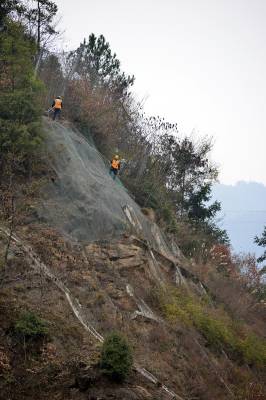 1月15日,荆门桥工段职工在宜万铁路救古坪大桥上方边坡检查设备隐患。据了解,针对2015年全国铁路春运即将拉开帷幕的实际,荆门桥工段集中开展设备隐患排查和整治工作,确保旅客安全出行。