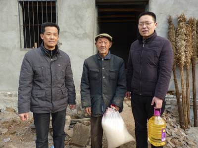 柳林村山高路远、坡陡路滑。在柳林村支书、主任的带领下,老师们来到扶贫对象家中,为他们送上大米、食用油和御寒衣物等慰问品。