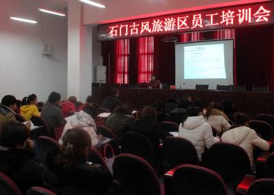 1月16至17日,在建始县旅游局的具体指导下,石门河景区强化综合素质技能培训班开班,来自景区一线的导游、讲解员、景交车司机、售票员、检票员、环卫人员、安保人员等众多员工接受了相关的强化培训。