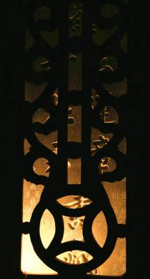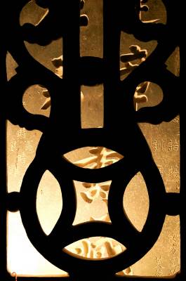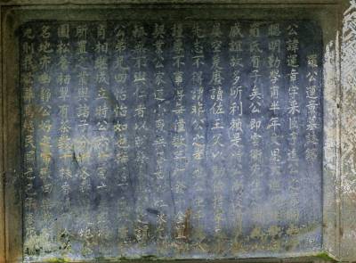 二是墓碑外面有碑罩保护。用青砂石雕刻的碑罩由镂空的金钱图案构成,碑罩上方刻人物图案,两边刻着“死者可作言坊行表”、“先生之风山高水长”的楹联,横批是“遗爱堂”。透过碑罩的图案空隙,清楚地看到墓碑上“罗公运章、罗母杜君寿藏”几个阴刻大字和其他文字。