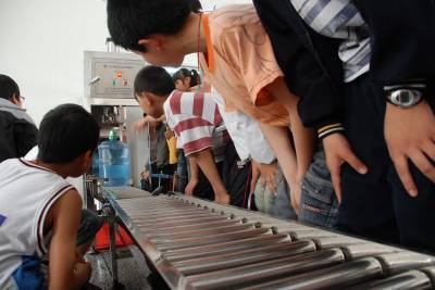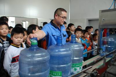 5月10日,武穴市第二实验小学的寄宿部学生,来到市郊的东盛工贸饮用水公司,现场参观饮用水生产包装下线过程。整个厂房整洁的外貌、工人师傅们一丝不苟的工作态度和严格规范的工作流程,让学生们受益匪浅。本报视界网刘飞摄