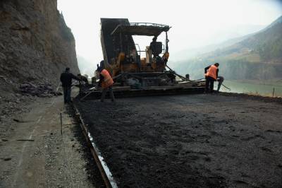 视界网元月18日讯 竹山:开展“大战五十天 确保开门红”活动助推十竹路建设加速度 元月18日上午,笔者在“十(堰)竹(山)路”竹山县文峰乡东钦段水泥稳定砂铺筑现场看到,运输水泥稳定砂的车辆来回穿梭,压路机、装载机、水泥稳定砂摊铺机等机械正在作业,工人们在现场技术人员的指挥下有序施工;施工现场的工作气氛没有受严冬季节影响,仍然是热火朝天的忙碌景象。元月一日以来,公路建设者放弃节假日,积极投身入“大战五十天 确保开门红”主题活动中;十竹路竹山段工程项目部抢抓最近晴好天气,克服严冬寒冷,开足马力忙施工,已铺筑水泥稳定砂全幅3.8公里。预计6月底可实现通车。(视界网 张睿拍摄)