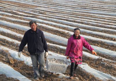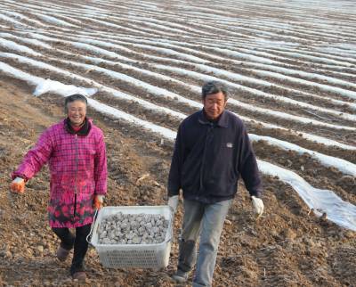 在自家土地上打工挣钱 1月19日,石花镇水星台村农民丁本国、李富芝夫妇正在自家的土地上帮助农场主种植土豆,打工挣钱。谷城县有序流转土地10万多亩,千余家家庭农场主、种粮大户在该县应运而生,万余户农民“洗脚上田”。 视界网马明刚摄