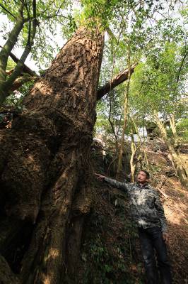 “山上没有树不成其为山,山里人不爱树不成其为山里人。”茶油台村民小组组长龙德光介绍,茶油台院落的村民不仅有爱树护树的传统,还有爱树护树的院规。村民做饭、烤火的柴禾只许砍树枝,不许砍主干,不许在树林里放牧牛羊,连村民砍一棵树做锄把都要开院子会决定。上世纪50年代“大炼钢铁”时,村民以山高路陡搬运困难为由成功予以阻拦,让这片原始森林得以保全。前些年修通组公路,村民们宁可让公路绕道占用院落前的坝子,也不准占毁近在咫尺的原始森林。
